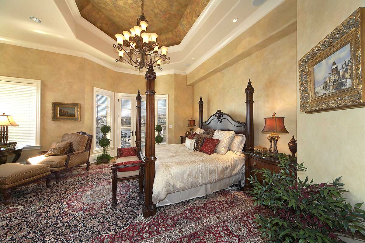 Custom home featuring stone exterior, custom woodwork throughout, and multiple outdoor living spaces.