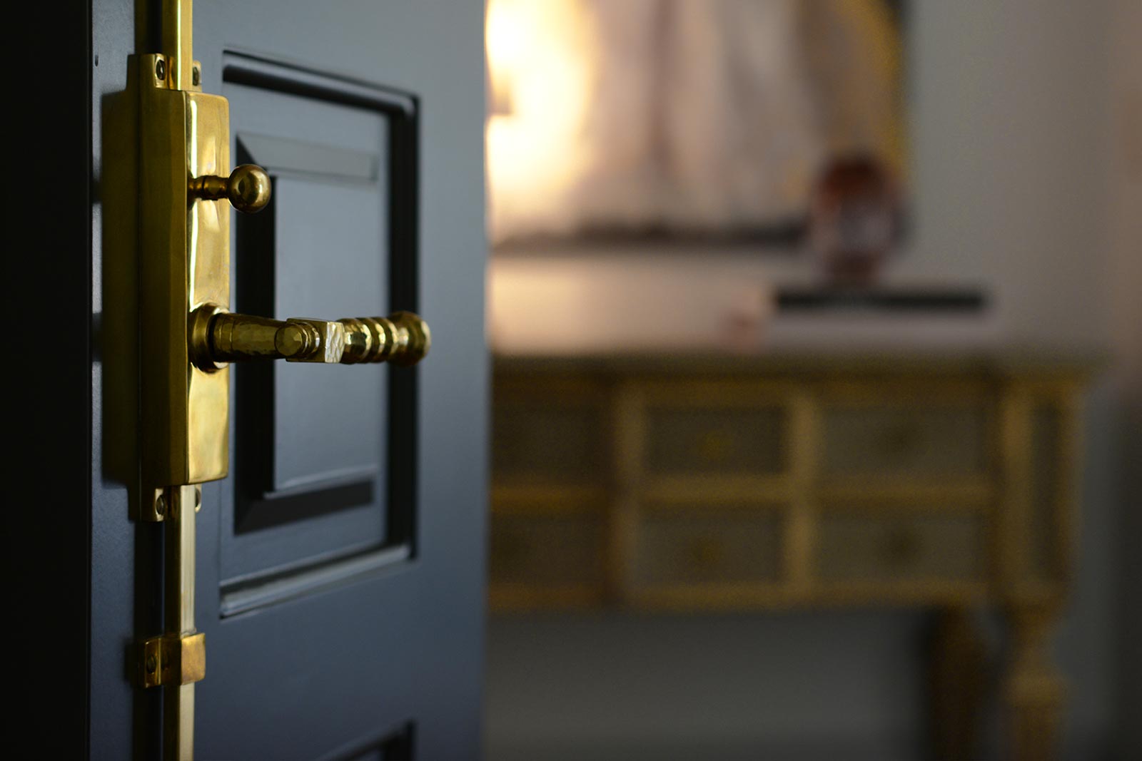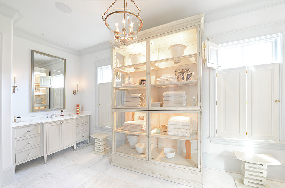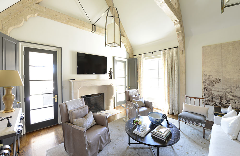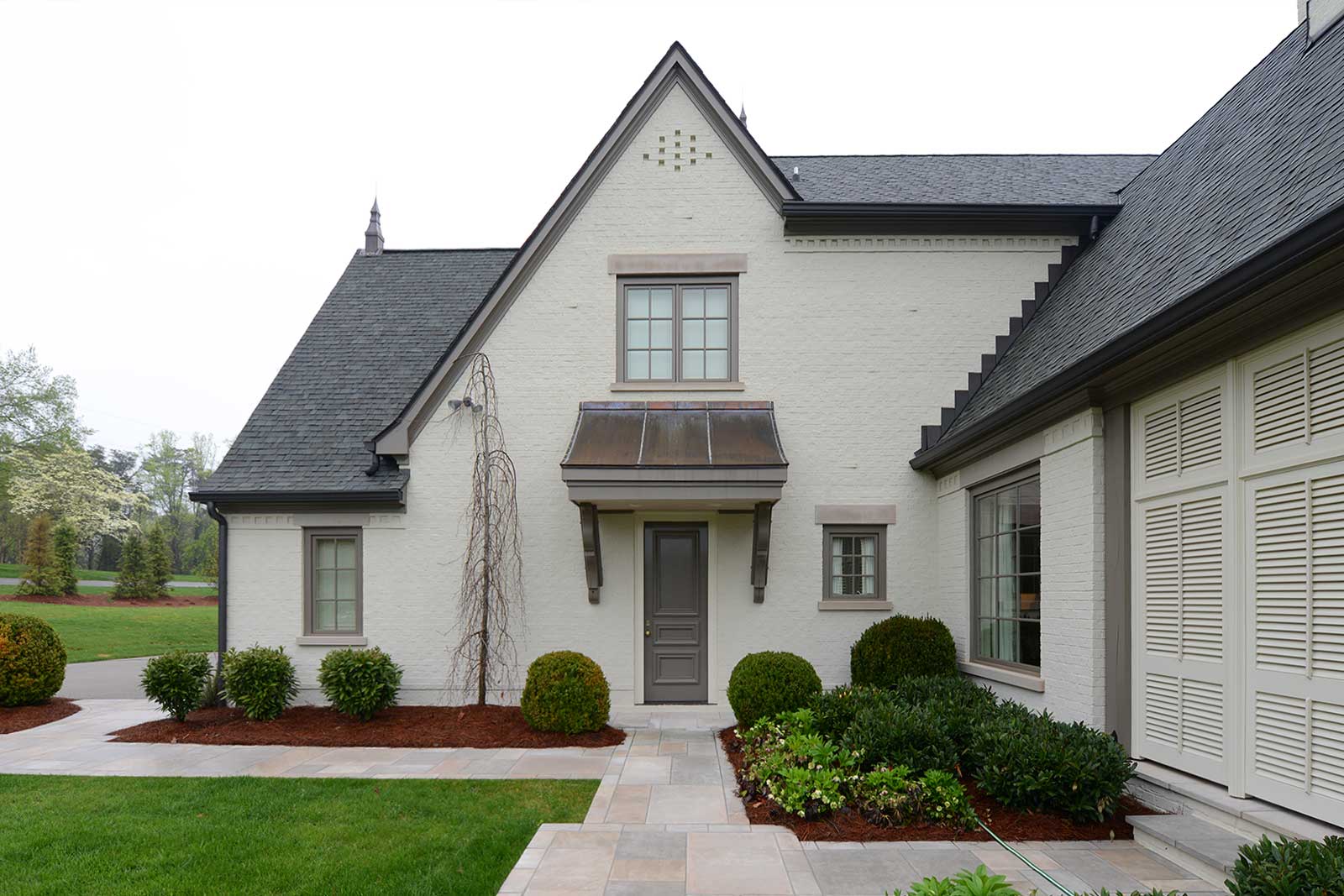 New construction featuring painted brick, limestone, exposed timbers, gas lanterns, and custom louvred shutters and walls.